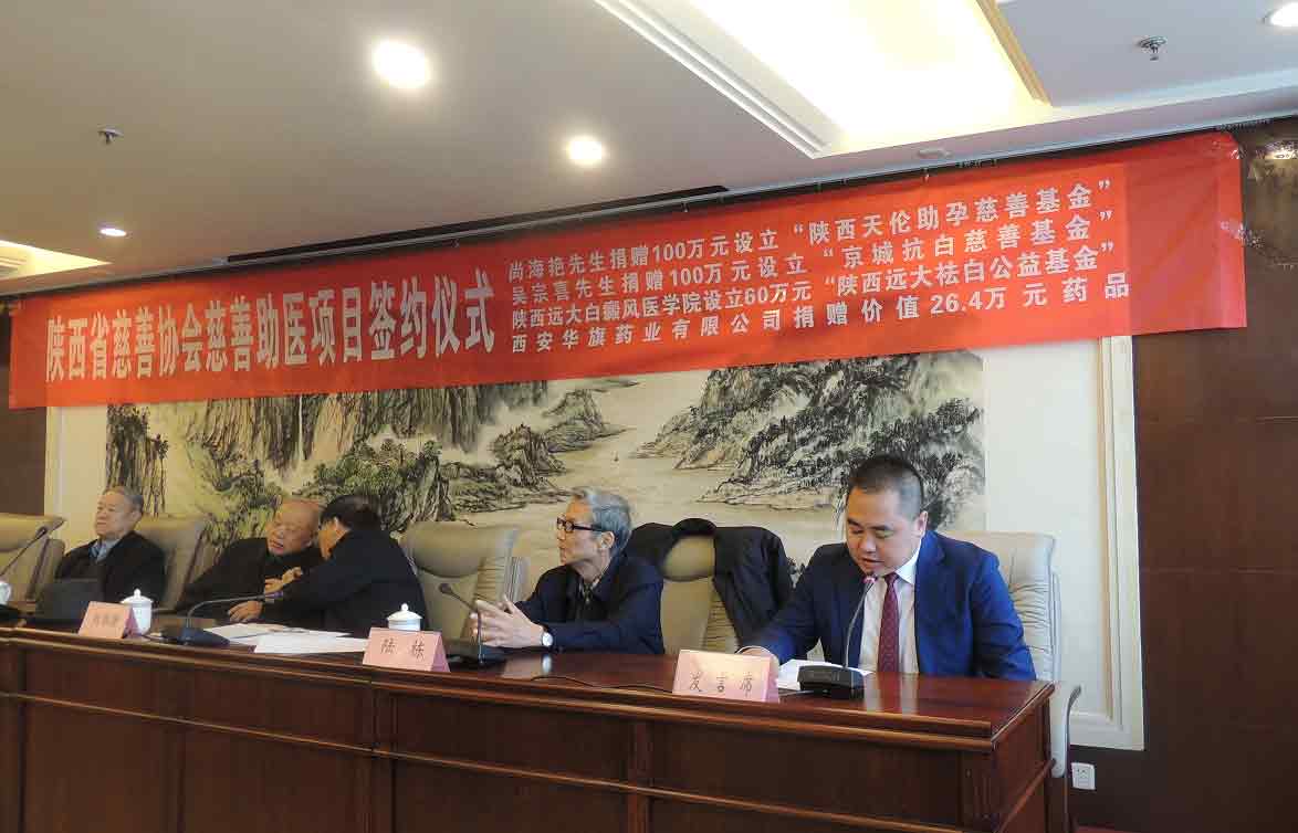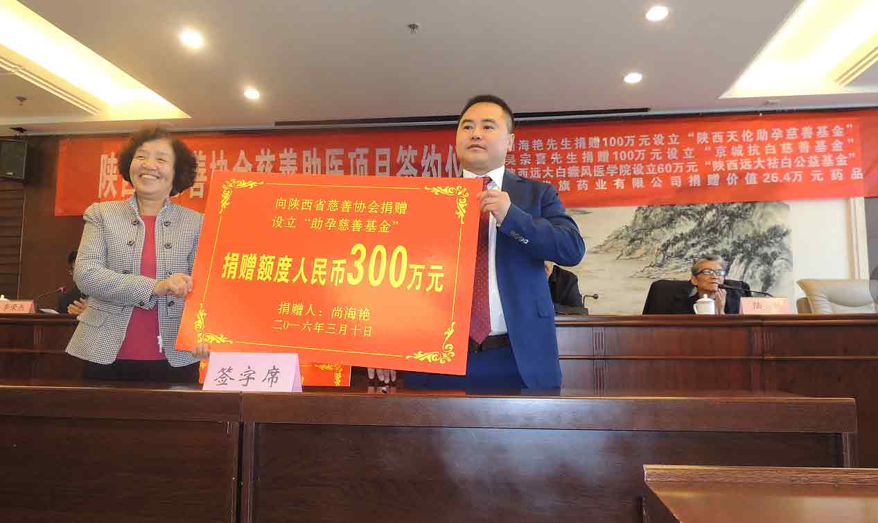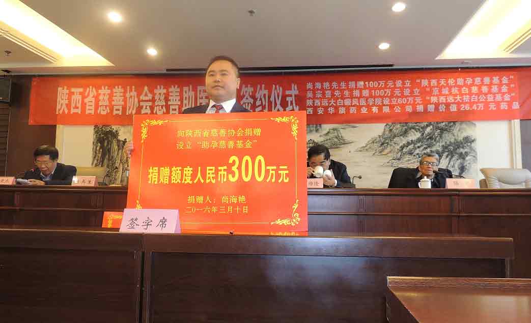 海维尔集团董事长尚海彦与陕西省慈善协会代表签订捐赠协议
